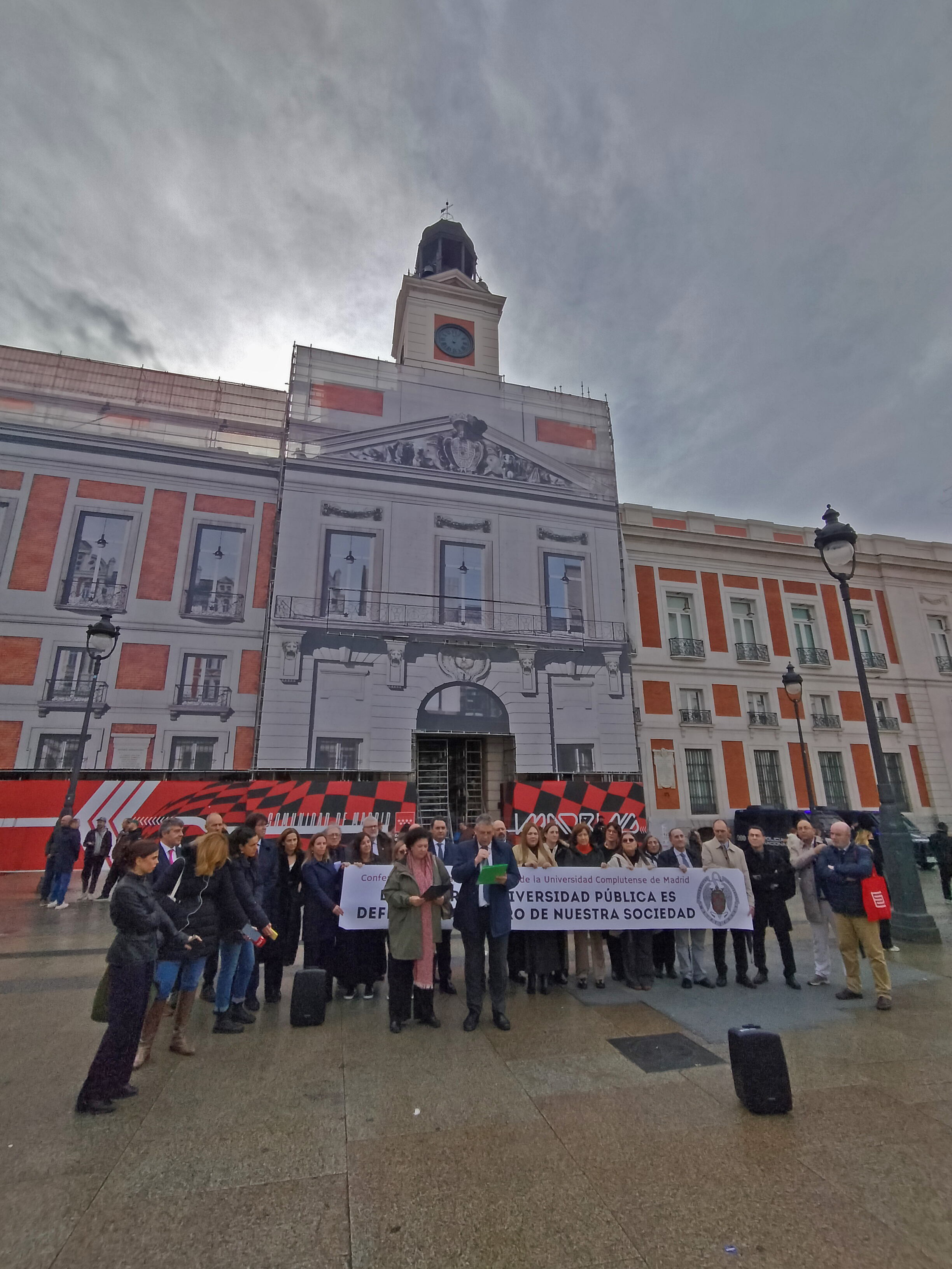 Tras la lectura del manifiesto, una representación institucional de la Universidad Complutense fue recibida por Dña. María Mercedes Zarzalejo Carbajo, Viceconsejera de Universidades de la Comunidad de Madrid, y D. Nicolás Casas Calvo, Director General de Universidades en la Real Casa de Correos.