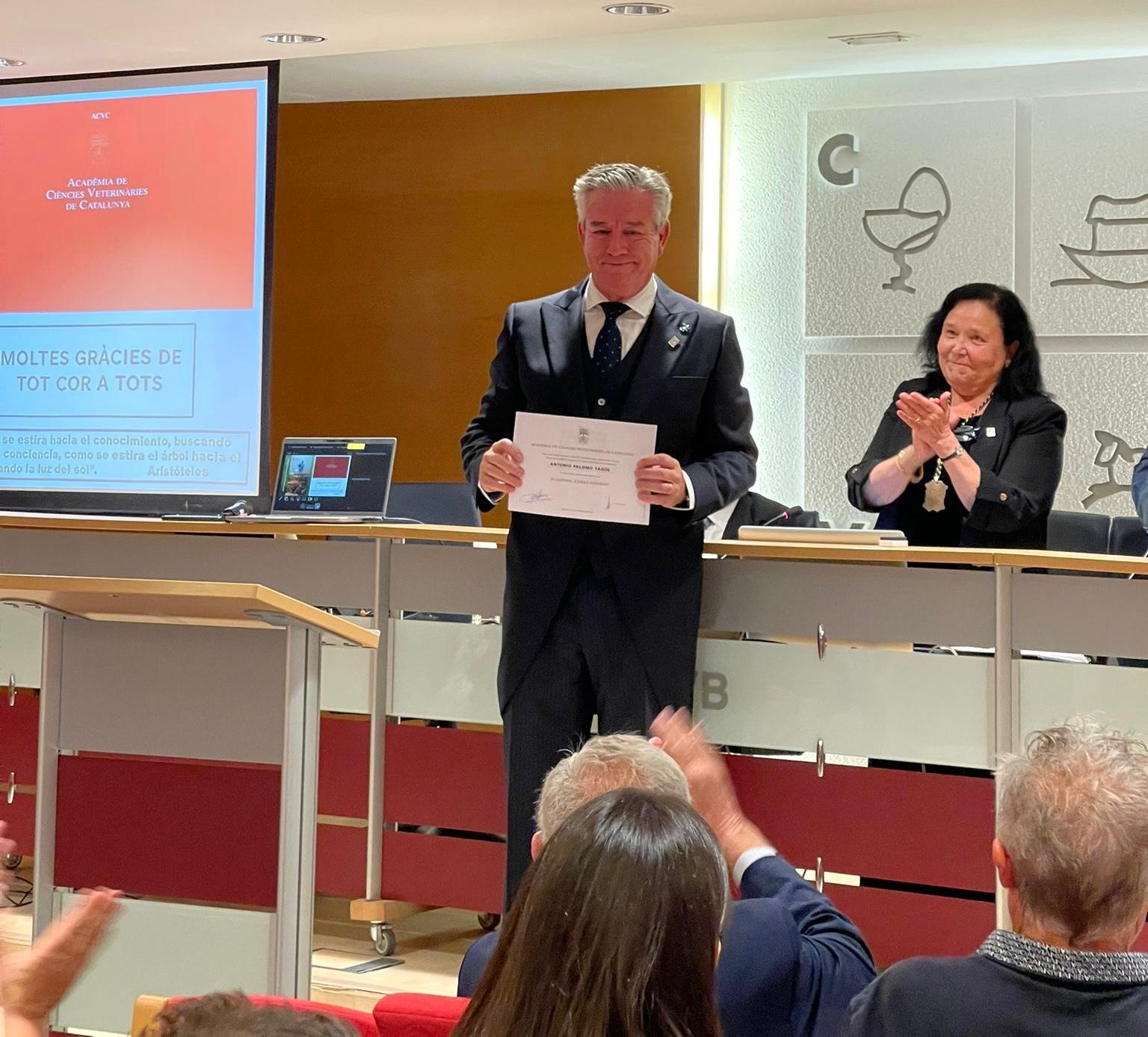 Nombramiento de Antonio Palomo Yagüe como Académico correspondiente en la Academia de Ciencias Veterinarias de Catalunya.