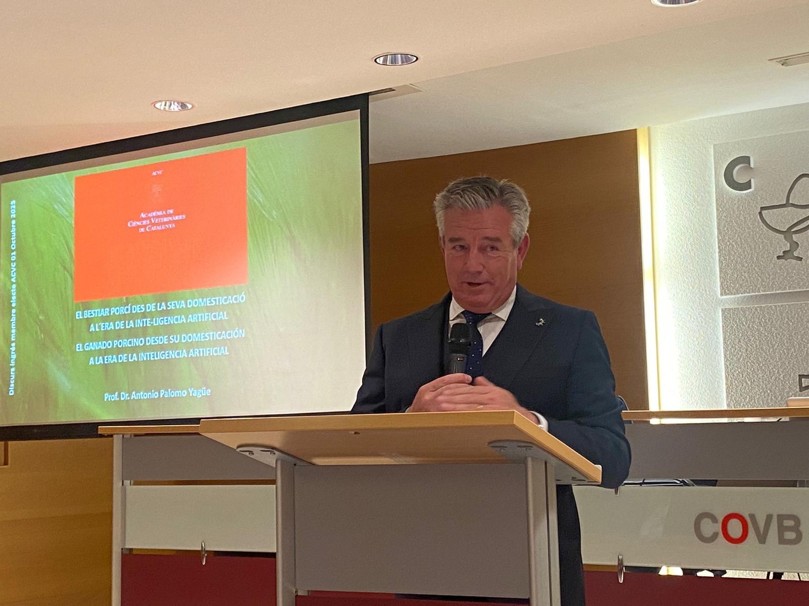 Nuestro compañero Antonio Palomo Yagüe, Doctor en Veterinaria, ha sido recientemente nombrado Académico correspondiente de la Academia de Ciencias Veterinarias de Catalunya en una sesión solemne que tuvo lugar en la sede de esta institución, el Colegio Oficial de Veterinarios de Barcelona. Su conferencia de ingreso llevó por título “El ganado porcino desde su domesticación a la era de la inteligencia artificial”.